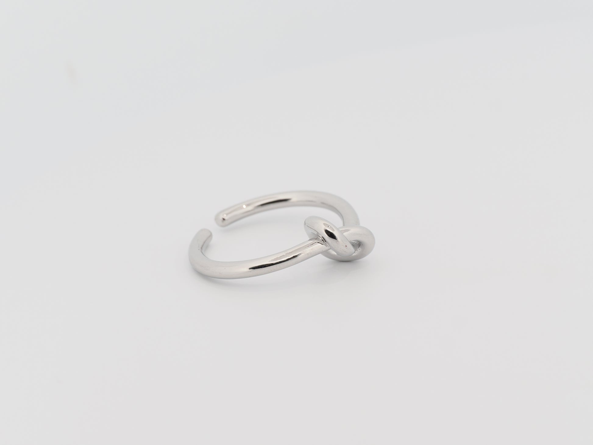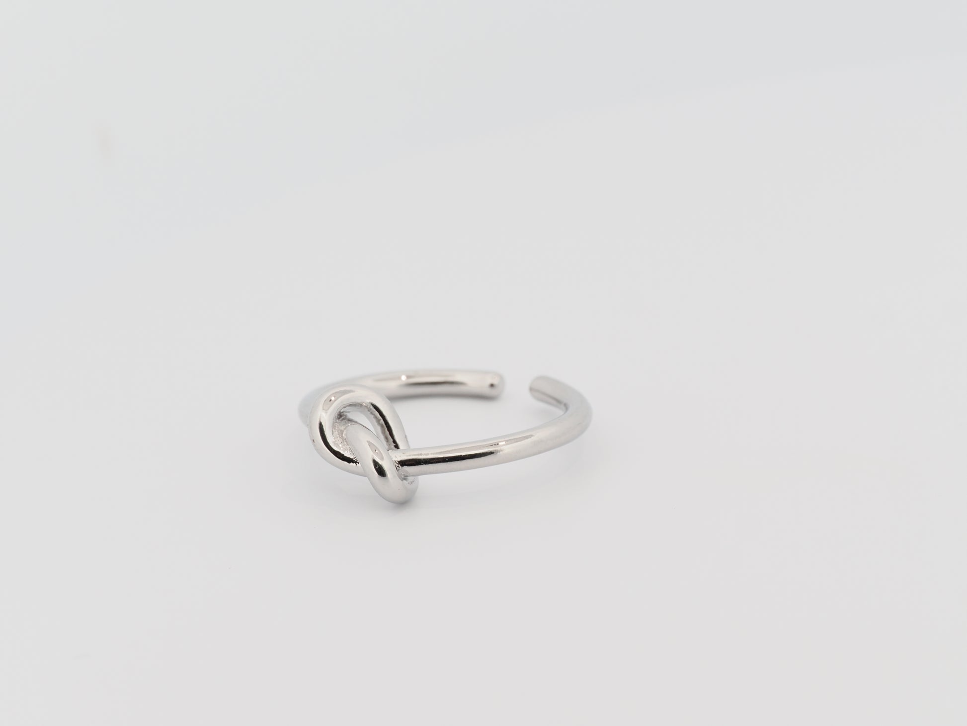 This elegant silver ring captivates with its minimalist knot design, symbolizing connection and strength. Thanks to its one-size, adjustable fit, it comfortably adapts to various finger sizes, making it an ideal everyday piece. Perfect for stacking with other delicate rings or worn as a subtle statement on its own.