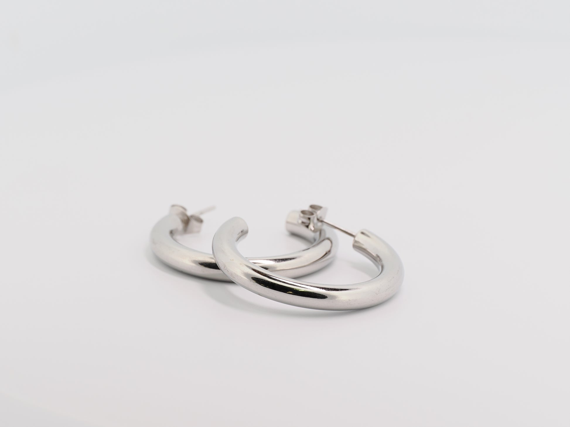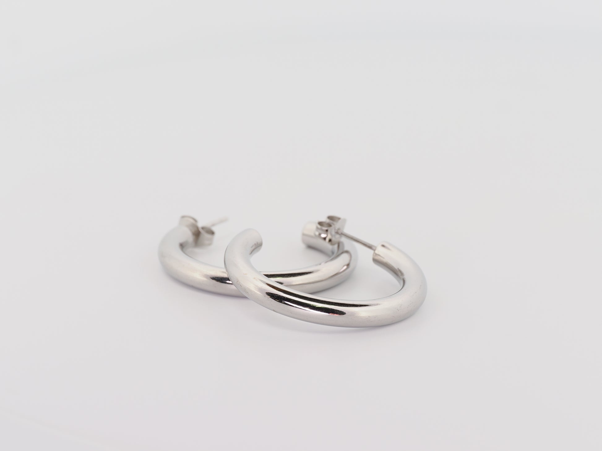 These classic hoops are a timeless must-have. With their simple design and shiny silver plating, they add subtle yet stylish accents. Perfectly versatile, they complement any outfit and are a reliable companion for every occasion.