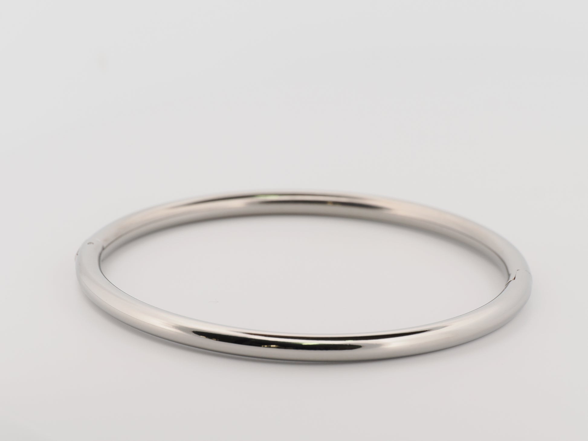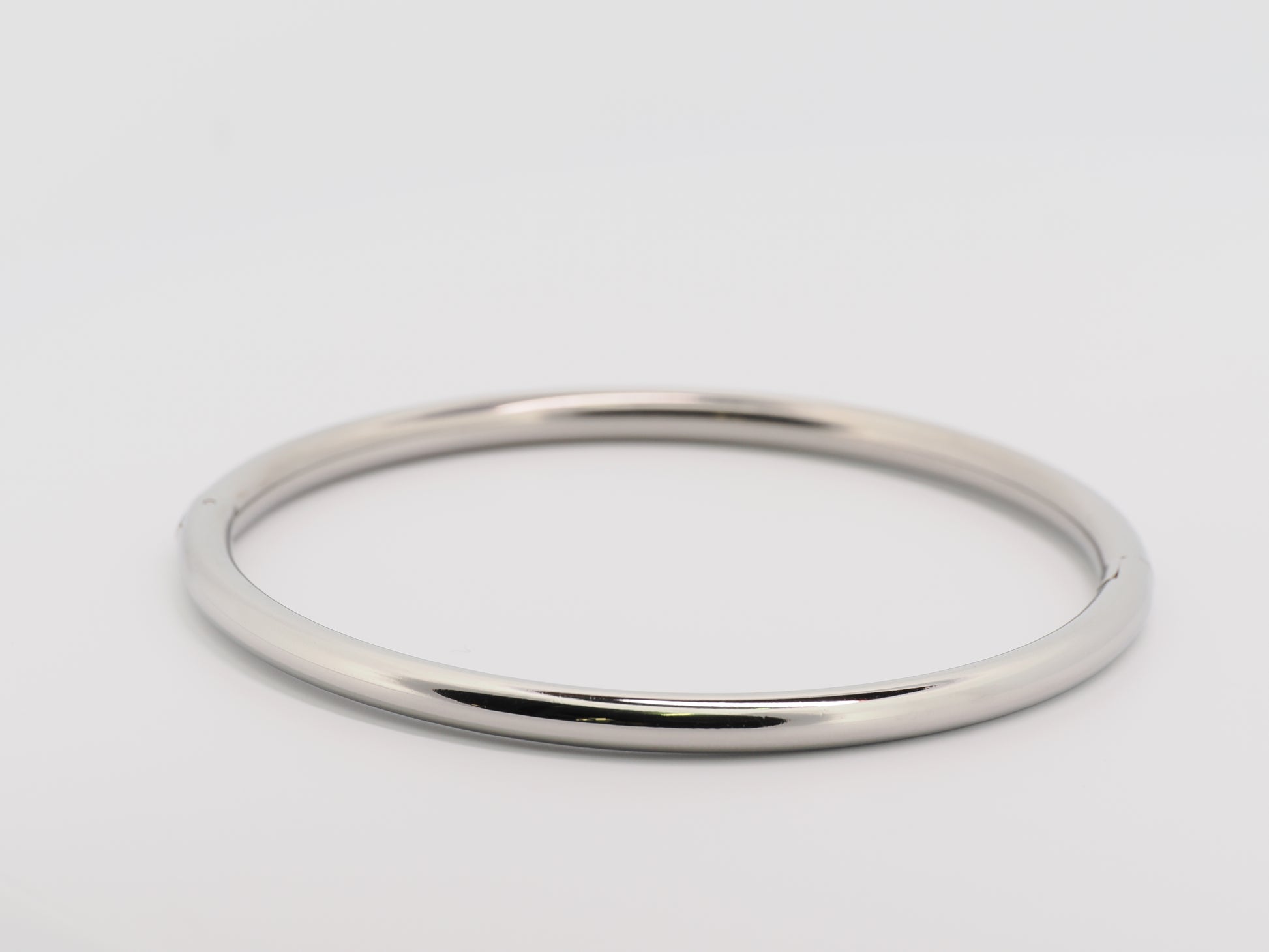 This elegant silver bangle with a simple click clasp combines clean design with everyday comfort. Its slim silhouette makes it a timeless piece that can be worn solo for subtle elegance or stacked for a bolder look. The secure click mechanism ensures easy handling while maintaining a refined finish – perfect for any occasion.