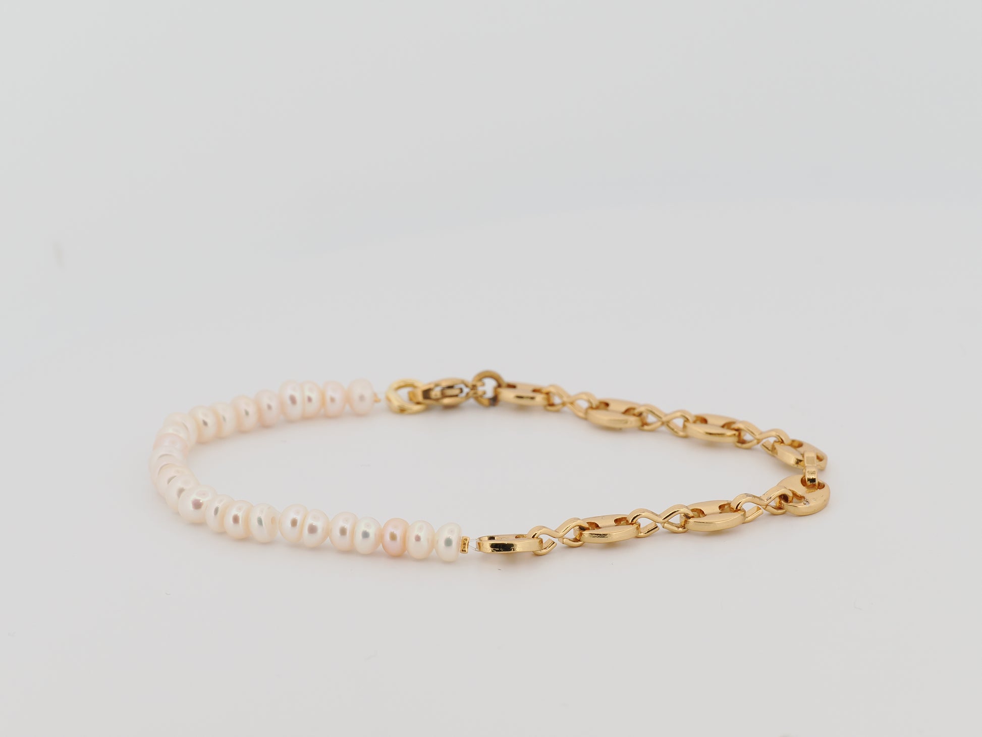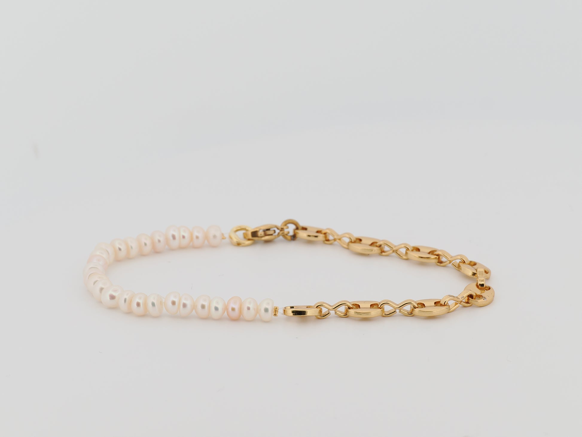 The Split Ocean bracelet blends timeless elegance with a modern touch. Featuring genuine freshwater pearls paired with a sleek stainless steel chain, this piece is inspired by Scandinavian simplicity and refined design. Its delicate look makes it versatile – perfect on its own for a subtle statement or layered with other bracelets for a stylish mix. Handcrafted in Denmark, each pearl is unique, making every bracelet one of a kind.